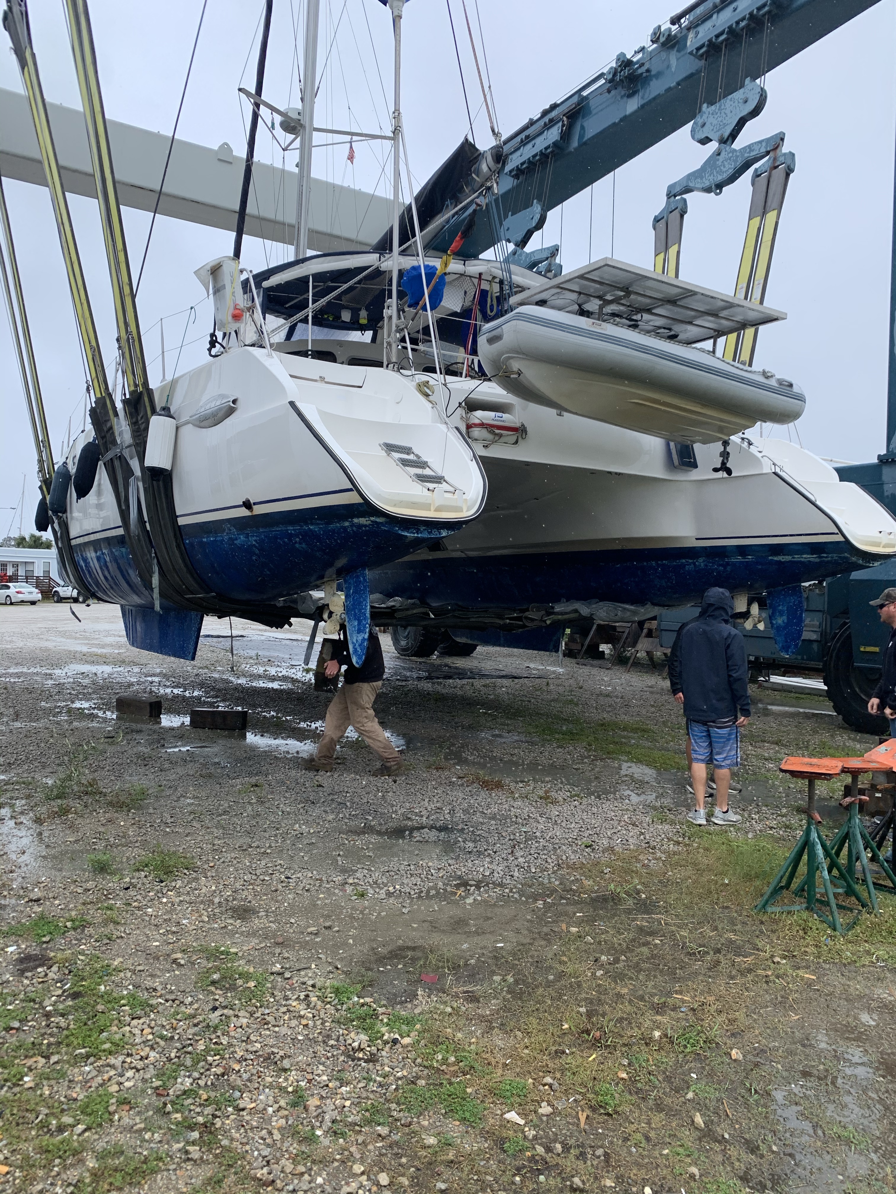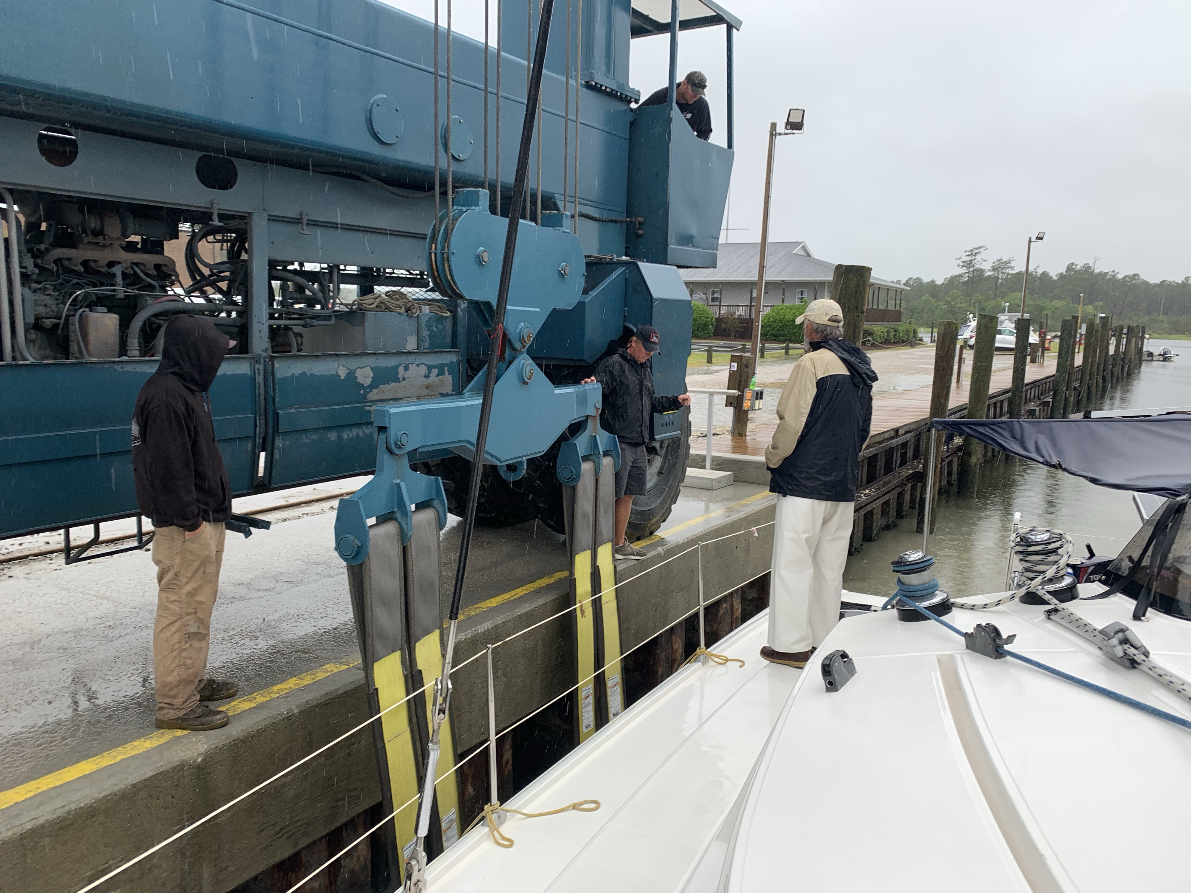Wir machten an der reservierten Mooring Boje fest und bereiteten uns die nächsten Tage auf den Heimreise vor. Ein Tag vor Abflug beschlich mich das Gefühl, dass ich so schnell wohl nicht mehr so leicht in die Staaten und somit zum Boot zurückkommen kann. Kurzentschlossen habe ich mich entschieden, das Boot nicht an der Mooring im Lake Worth über die Hurrikan Saison liegen zu lassen und bin nicht mit Tobias nach Hause geflogen. Der Abschied war bitter, plötzlich war ich allein auf der PASSAT II…..sehr ungewohnt…Ein geeigneter Platz für unser Boot ausserhalb der Hurrikan Zone und innerhalb der von der Versicherung abgedeckten Gebiete musste her. Bezahlbar sollte das ganze natürlich auch sein. In den USA eine echte Herausforderung. Nach langer Suche wurde ich in Beaufort, North Carolina fündig. Ein Liegeplatz auf dem Trockenen, das Boot gesichert mit Spanngurten, die an Betonblöcken festgezurrt sind, ja das ist es! Einziger Wermutstropfen…..das war über 600 Seemeilen entfernt vom jetzigen Standort, puh und dass jetzt ganz allein.