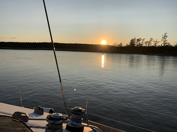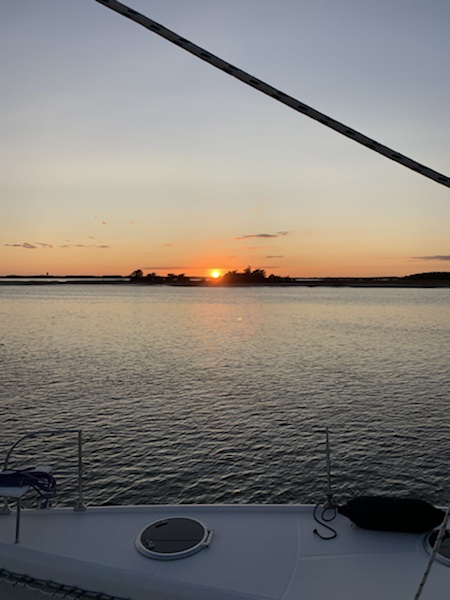 Wir genießen den Sonnenuntergang, stoßen an auf eine wundervolle gemeinsame Zeit, die vor uns liegt… und vergessen dabei die flachen Stellen beim Einlaufen in diese herrliche Bucht. Ja, wir laufen ordentlich auf, befreien uns aber mit voll zurück und versenken kurz danach das Eisen . Wir ankern vor einmaliger Kulisse und freuen uns riesig auf die kommende Zeit . Zu zweit die US East Coast nach Süden, in Miami links abbiegen und dann „Bahamas wir kommen“!
