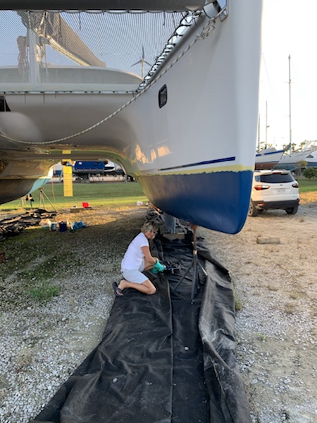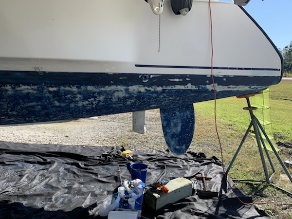Der Elektroantrieb einer Toilette ist im Eimer, (immer eine Lieblingsarbeit…), der Gefrierschrank braucht einen neuen Kompressor und neue Kühlelemente, weitere Solarpanele und neue Regler sind nötig, das Dinghy möchte aufpoliert werden, das Antifouling muss angeschliffen und erneuert werden und vieles mehr. Es waren harte 17 Tage.
