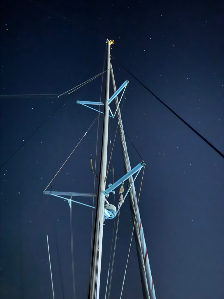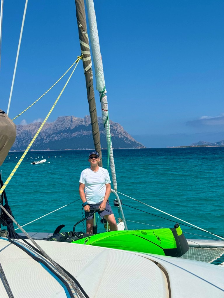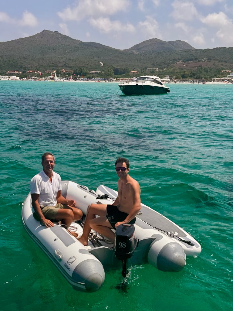 Peter war vor Monaten in Kapstadt solo gestartet, segelte über St. Helena nach Horta (Azoren), wo Fynn dazustieß. Gemeinsam fuhren sie weiter durch die Straße von Gibraltar nach Sardinien – und dann lagen wir nebeneinander vor Anker.