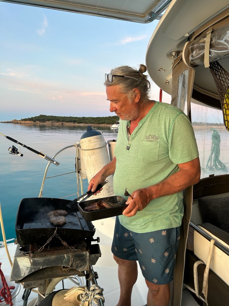 Das Wiedersehen war großartig – gekrönt von einem ganz besonderen Mitbringsel: frisch gefangener Thunfisch! Wir verbrachten wunderbare Stunden miteinander, Geschichten gab es ja genug zu erzählten. Schließlich segelten gemeinsam nach Porto San Paolo.