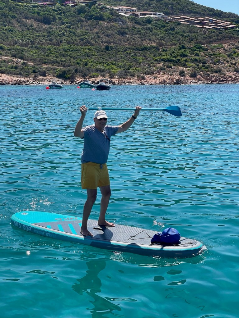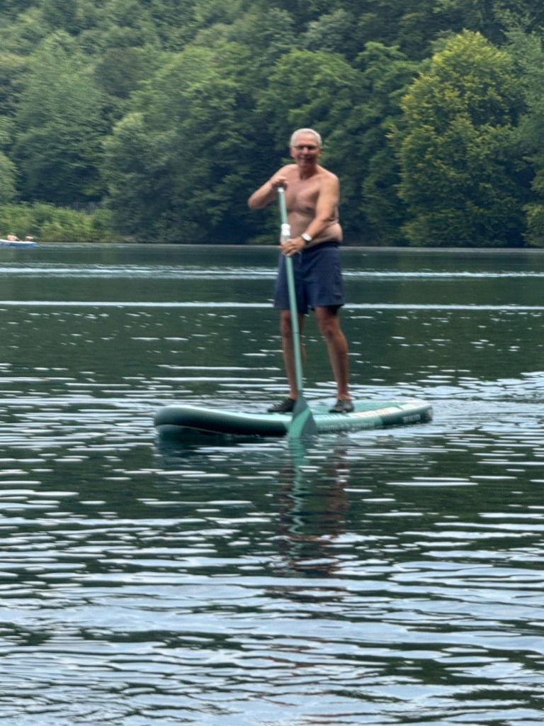 Nach anfänglichem zögern freunden sie sich mit unseren beiden SUP‘s ziemlich schnell an. Und siehe da, der Funke springt über. Nach ein paar Tagen stehen Gabi & Klaus toll auf dem Brett. Für Zuhause wurde gleich ein Set bestellt…..
