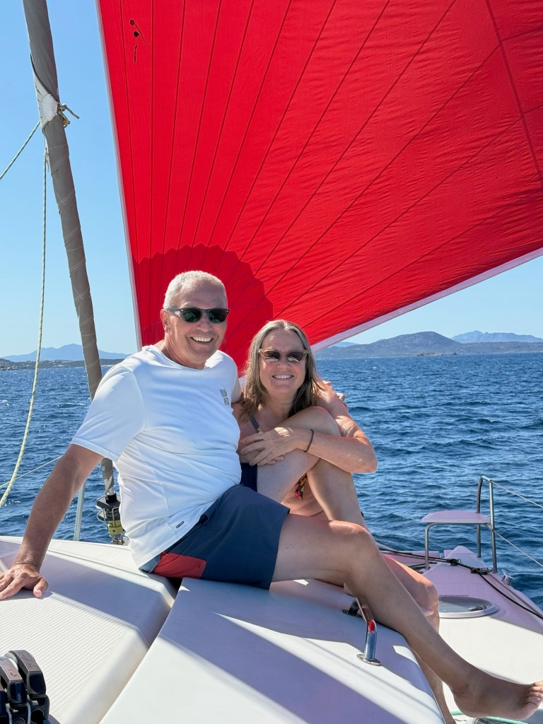 Überraschend schnell gewöhnen Sie sich an Wind & Wellen und wir segeln am ersten Tag von Cannigione bis zur Marinella Bucht. Es ist wahnsinnig warm, eine Hitzewelle treibt die Temperaturen auf über 30 C und wir halten uns vorrangig im Wasser auf