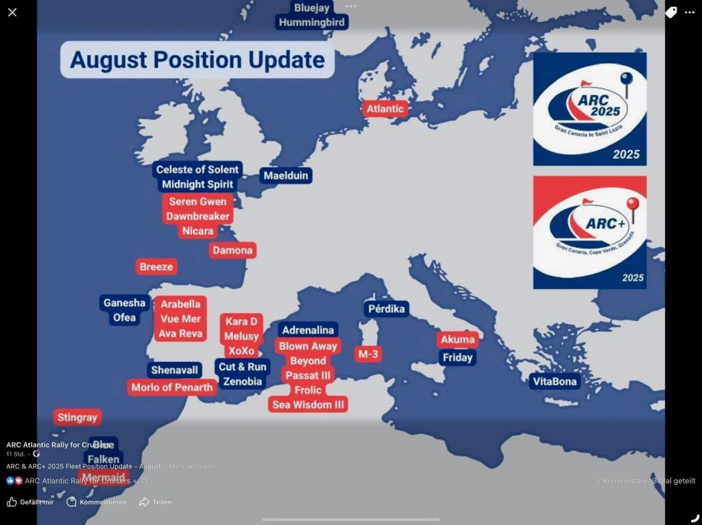 Nach dieser wundervollen Woche mit unseren römischen Freunden legten wir gegen Mittag ab Richtung Menorca. Rund 220 Seemeilen vor uns!