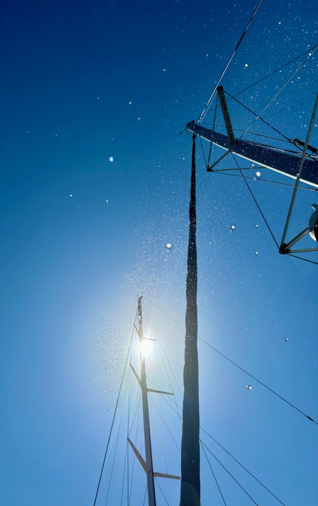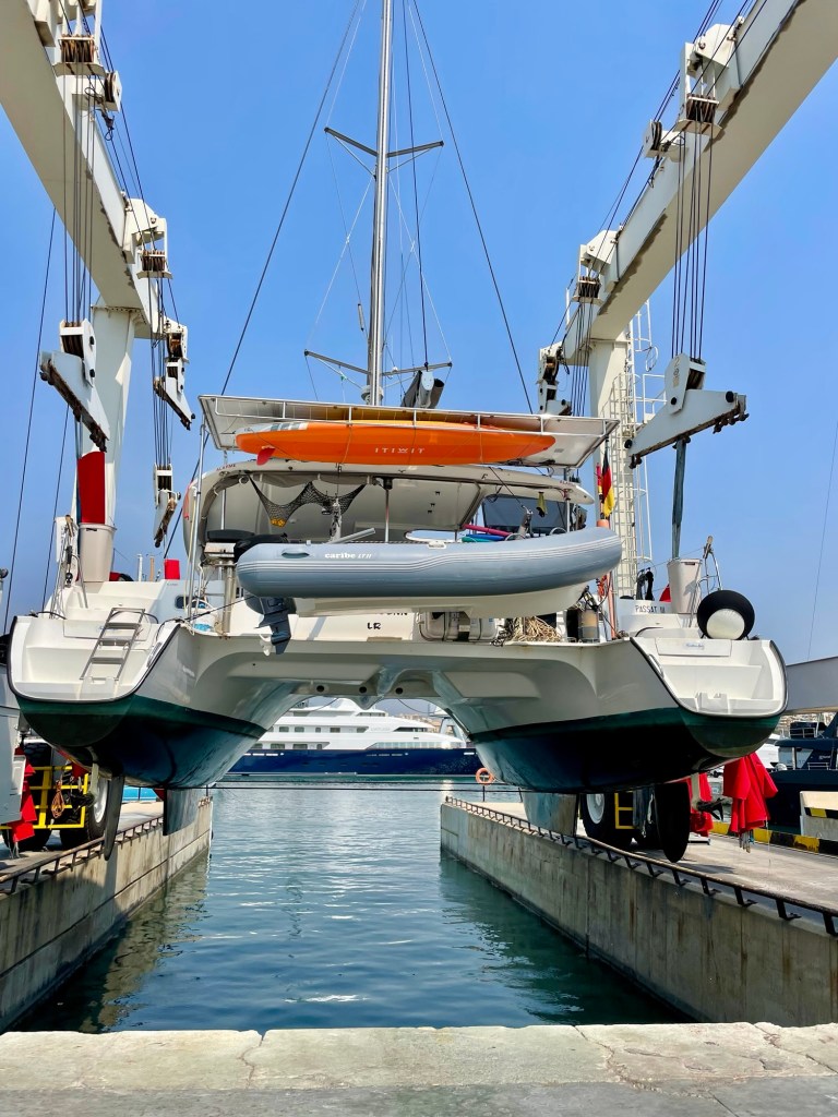 Was für ein Mist, alles neu und dann so etwas…. Über die Gründe für den Wassereintritt in beide Saildrives konnten wir nur spekulieren. Fest steht, wir müssen mit dem Travelift sofort aufs Trockene! Wir änderten den Kurs sofort Richtung Mallorca.