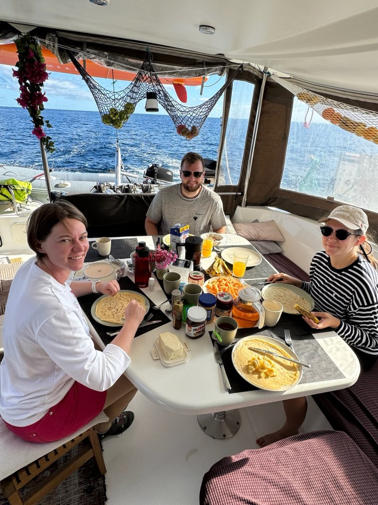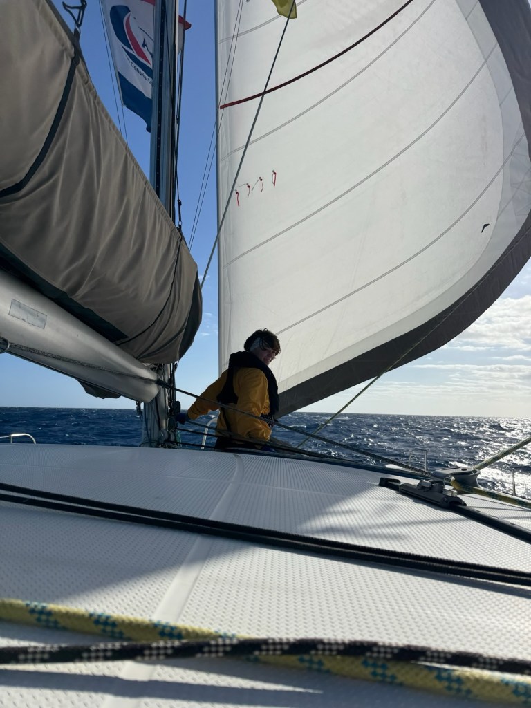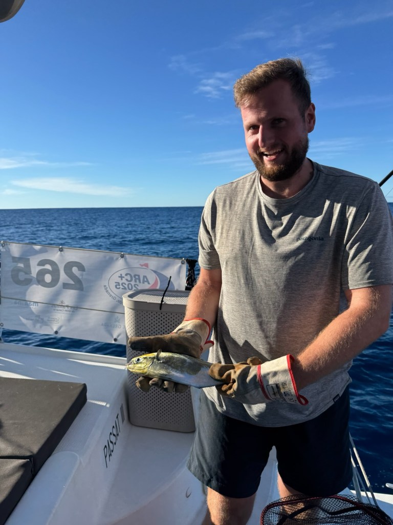Am Samstag gegen 18 Uhr erreichten wir die Ziellinie auf den Kap Verden. 7 Tage und 6 Stunden benötigten wir für die knapp 900sm lange Strecke Von Gran Canaria zu denCap Verden. Viel Wind und Welle am Anfang, dann immer weniger bis nichts….Wir mussten motoren….)-: Gegen Ende wurde es wieder deutlich windiger.