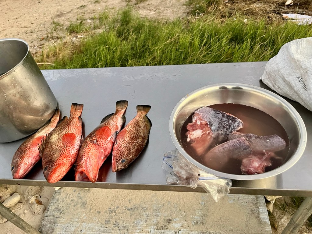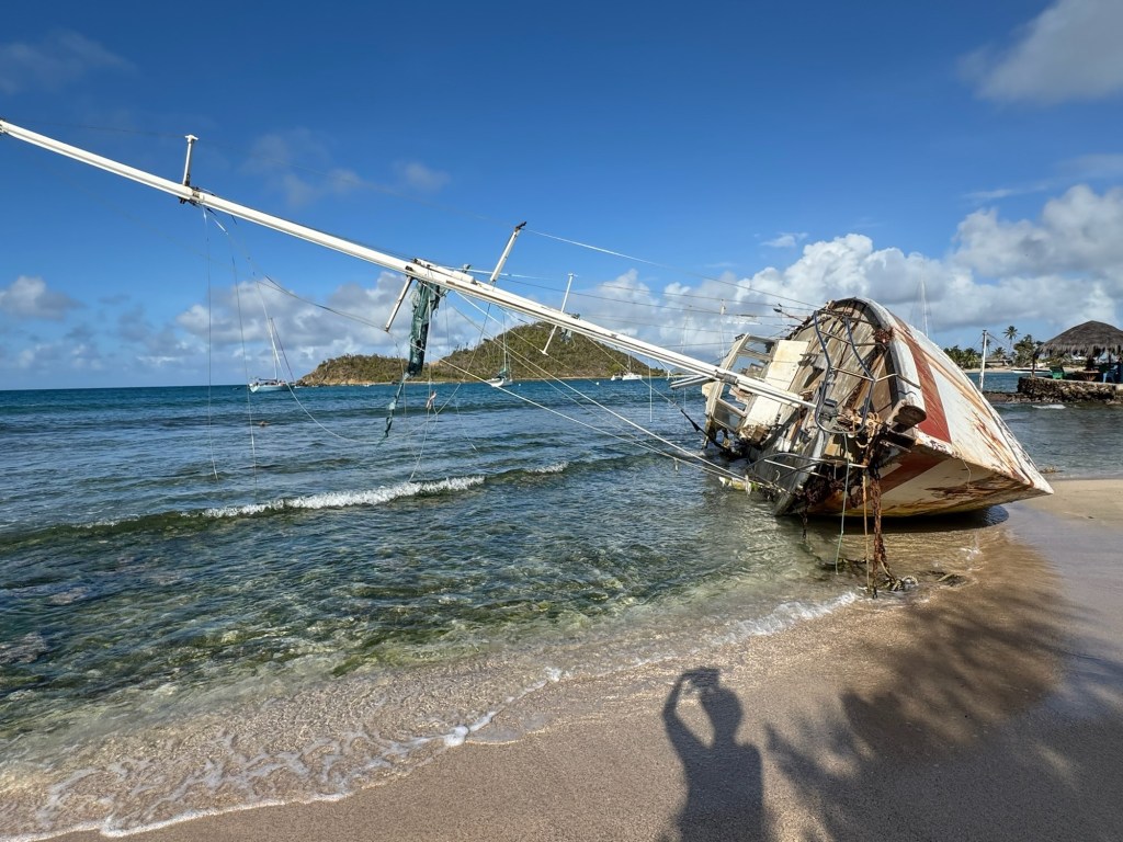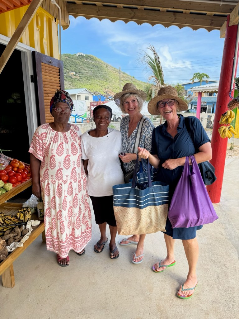 In Union Island wollen wir unsere Lebensmittel aufzustocken. Aber viel Auswahl gibt es nicht…..Union Island wurde am 15. Juli 2024 von Hurrikan Beryl komplett verwüstet und hat sich bis jetzt nicht davon erholt. Ute und Ellen finden trotz allem bei netten Verkäuferinnen etwas frisches Gemüse und Obst.