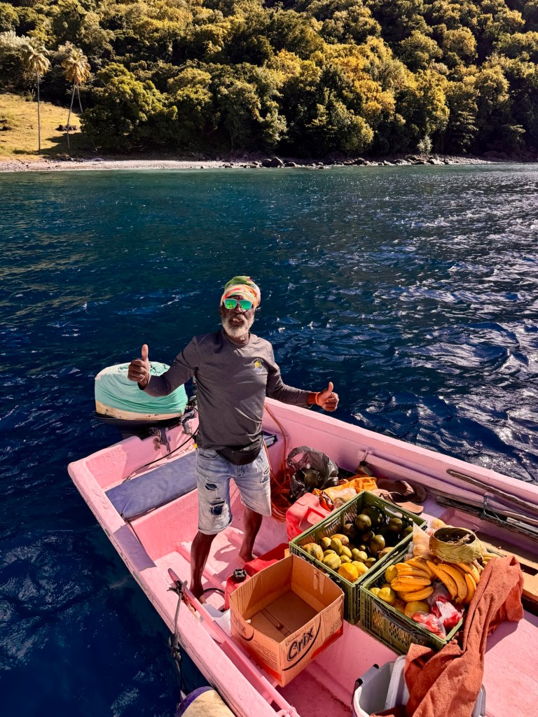 Wir schnorcheln bei den Pitons und kaufen noch etwas buntes Gemüse von den „fahrenden Händlern“. Super Service und gute Ware.